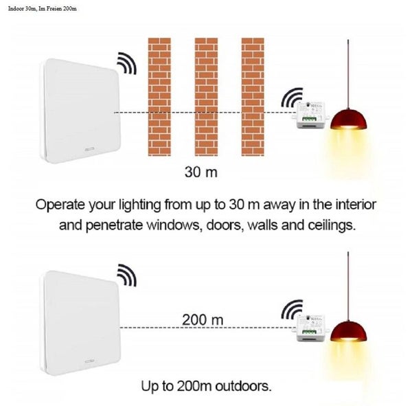 Entfernung: innen bis 30 Meter, aussen bis 200 Meter